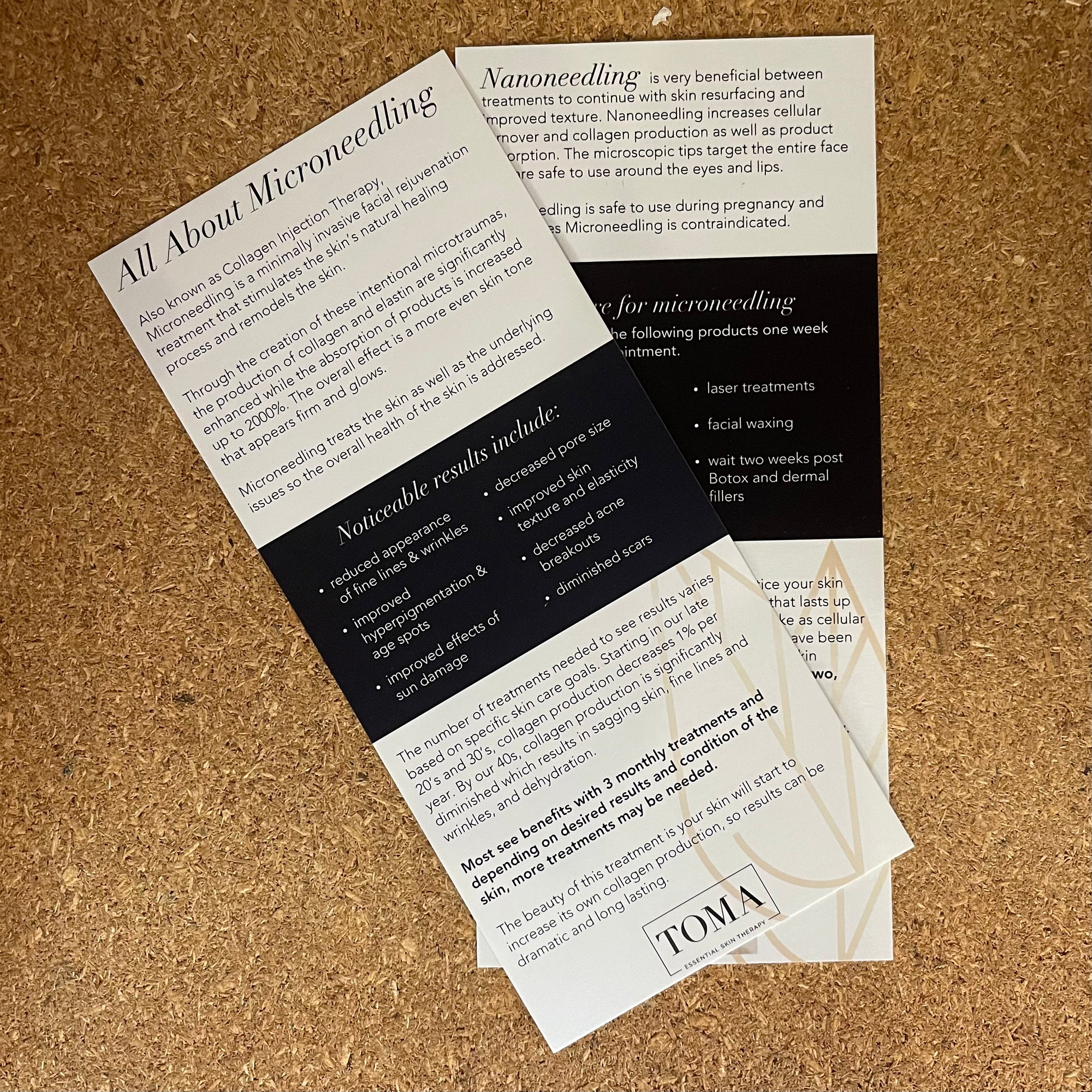 A pack of 20 rack cards. Explains micro- and nano needling and perfect for marketing your services to new clients.